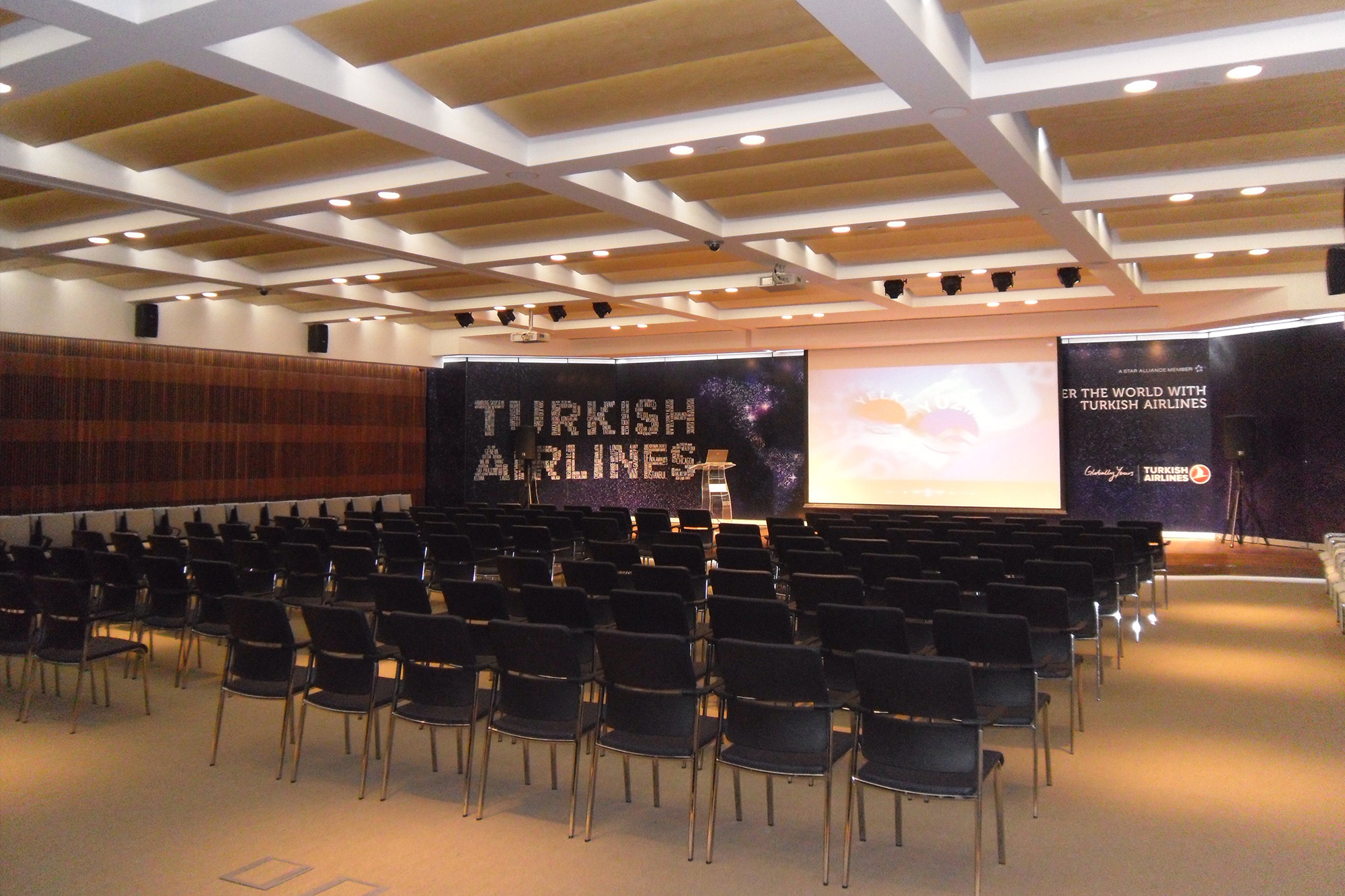 Turkish Airlines çok amaçlı salonu ahşap işler üretimi ve uygulaması, konsept tasarımı yapılan projelerin, mevcut mekan rölevelerinin alınarak, aplikasyonlarının yapılması. Shopdrawing lerin hazırlanarak tüm imalat detaylarının hazırlanması, malzeme arge çalışmalarının yapılarak ve uygulama sürecinin kontrolü tarafımızdan yapılmıştır.