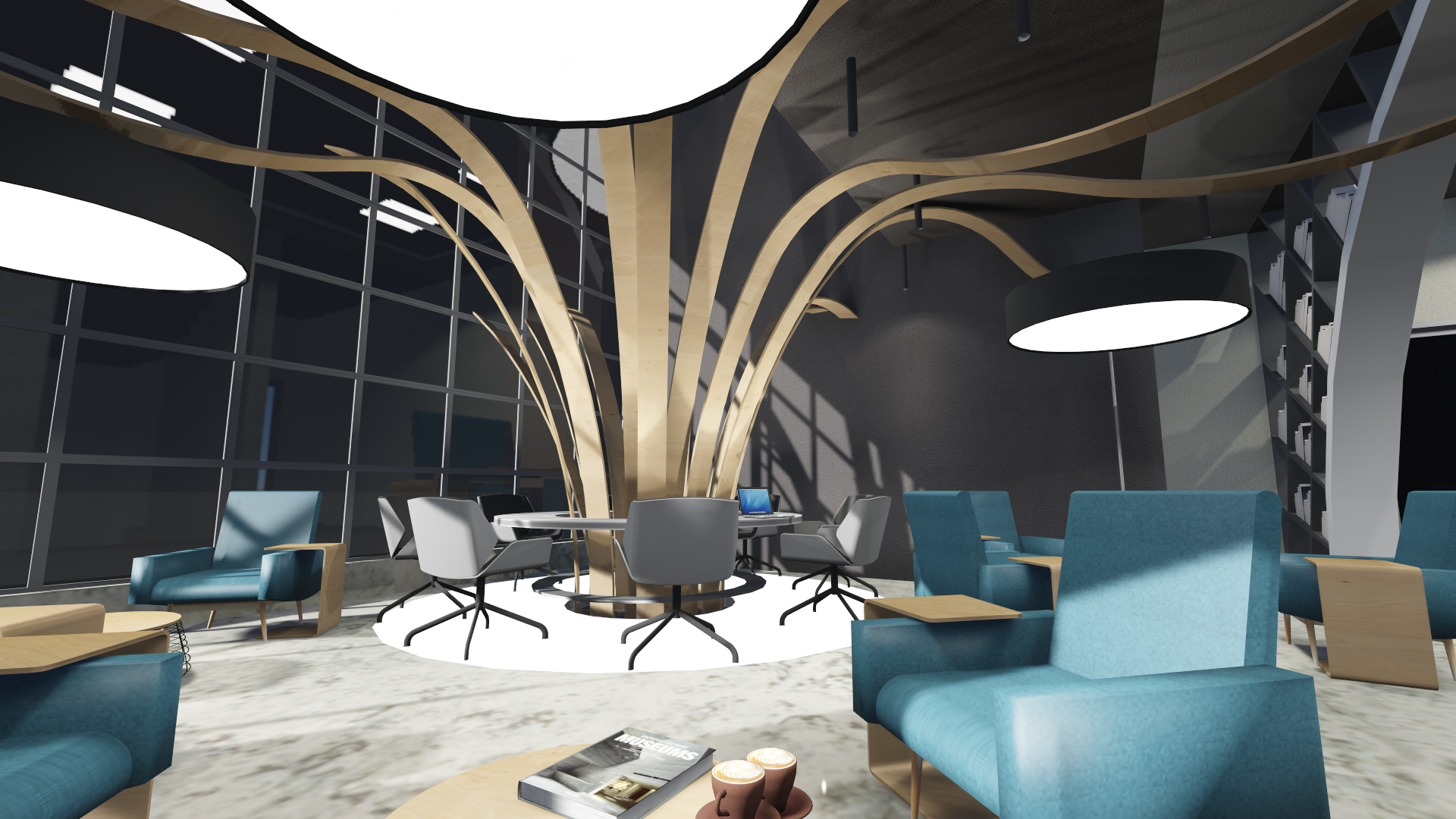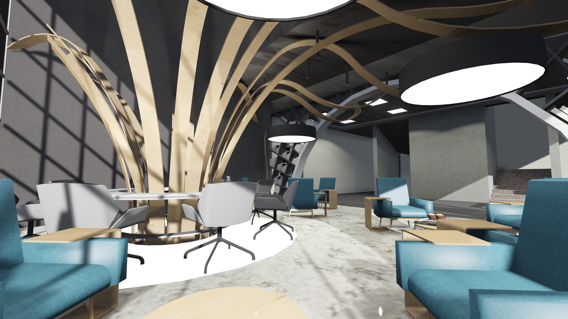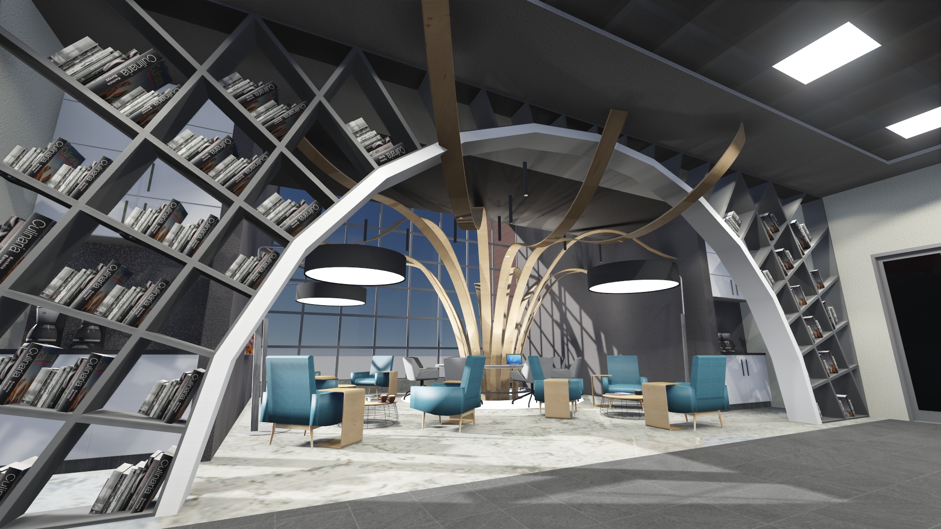 Turkish Airlines uçuş eğitim başkanlığı 1.Kat mevcut bekleme alanı ‘’LOUNGE’’ bölgesi tasarımı işi kapsamında; alternatifli taslak proje oluşturulması, 3D modelleme ile desteklenmesi, avan proje, mimari proje ve uygulama projeleri, metrajlı keşif listeleri, poz tarifleri, yaklaşık maliyet çalışmaları, kullanılacak malzemelere ilişkin tanımlar ve şartname bilgileri tarafımızdan yapılmıştır.