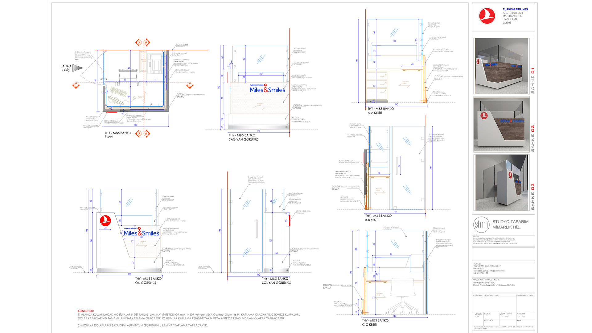 Atatürk Havalimanı İç hatlar terminalinde ‘’Miles&Smiles - kart dağıtım bankosu’’ yapılması işi kapsamında; işin anahtar teslim uygulaması da dahil olmak üzere, alternatifli taslak proje oluşturulması, 3D modelleme ile desteklenmesi, avan proje, mimari proje ve uygulama projeleri, metrajlı keşif listeleri, poz tarifleri, yaklaşık maliyet çalışmaları, kullanılacak malzemelere ilişkin tanımlar ve şartname bilgileri tarafımızdan yapılmıştır.